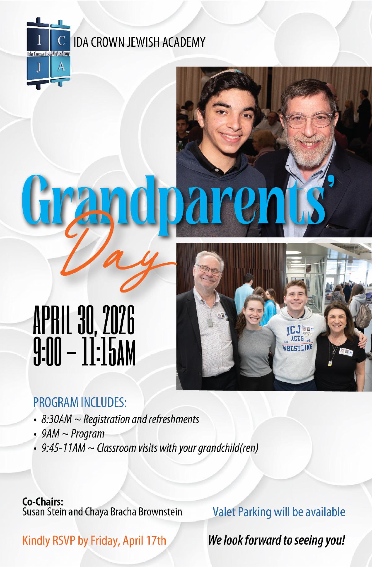 Thursday, April 30 - Grandparents Day 9:00 am -11:15 am - Click here to register