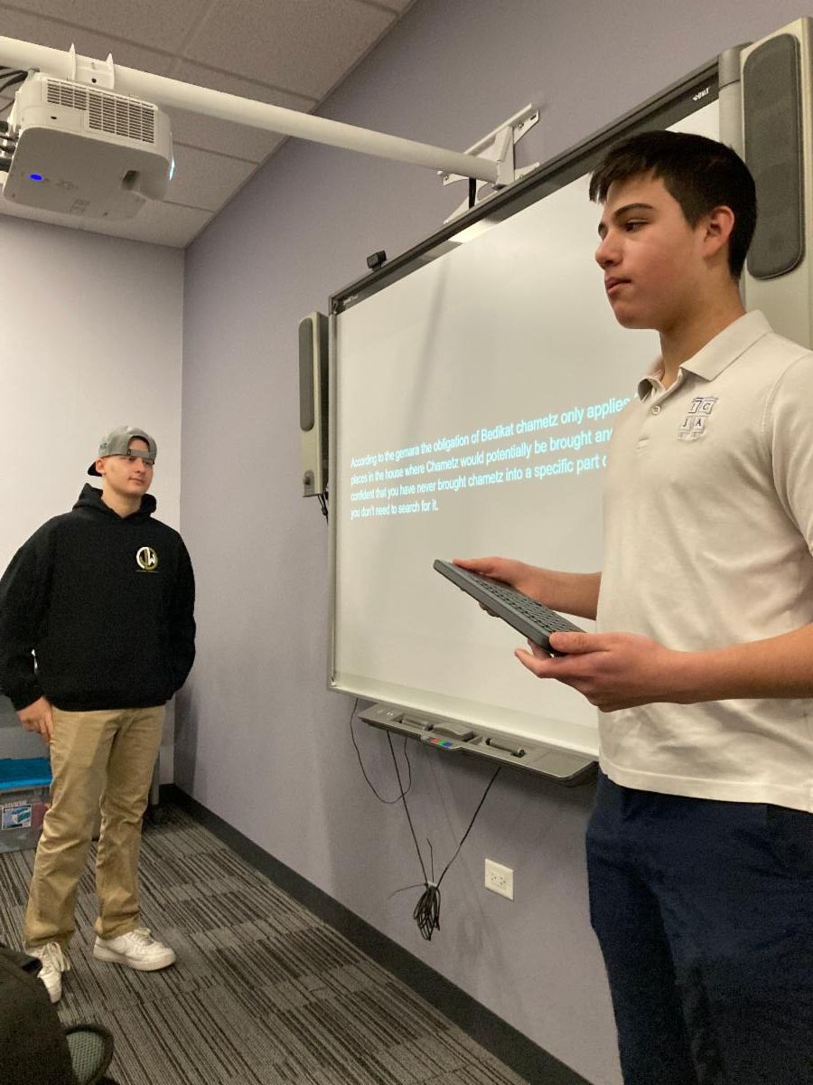 This week, freshmen in Rabbi Zev Drutman's Talmud class researched the halachot of Bedikat Chametz using the new ICJA halacha curriculum source books "Tzurba," then took turns teaching the rest of the class what they'd learned. | |
