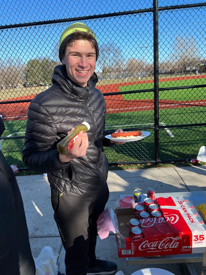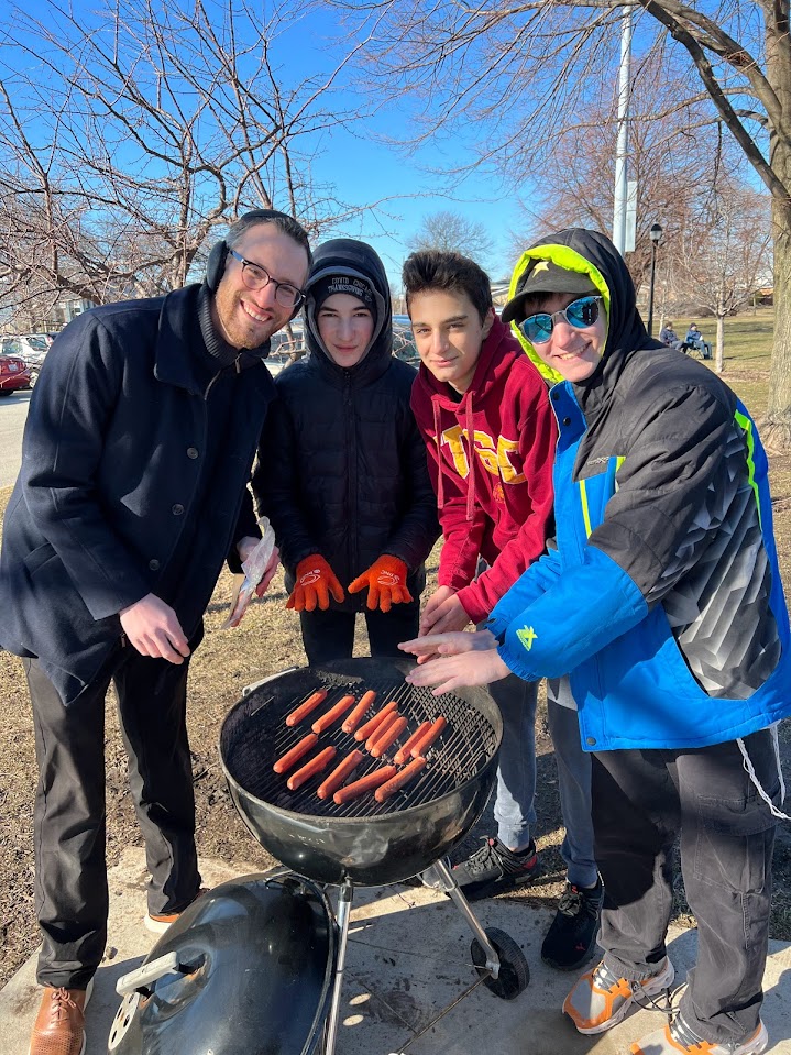 Last Sunday, March 19, approximately 40 boys gathered for a boys' tailgating barbecue at ICJA's baseball home games at Caleb Field in Skokie. Although the weather was cold, boys enjoyed helping grill Romanian hotdogs and having time to shmooze with each other and mechanchim Rabbi Menachem Rosenbaum and Rabbi Mayer Simcha Stromer, as well as Rabbi Louis Fliegelman and Dr. Gavi Brown.