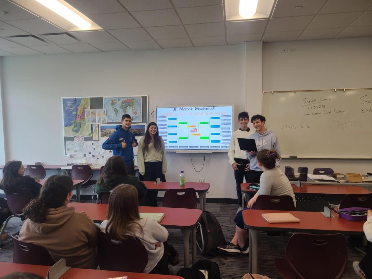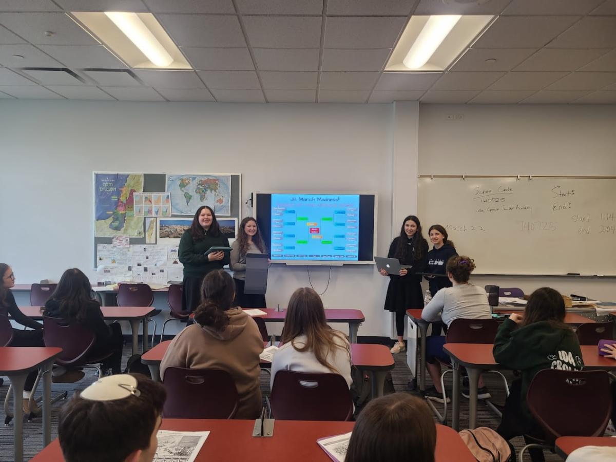 Sophomores competed in Rishonim March Madness, while seniors created visual Holocaust Journals. | |