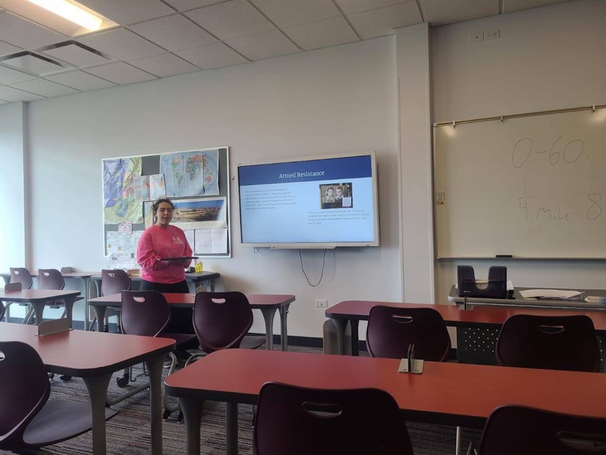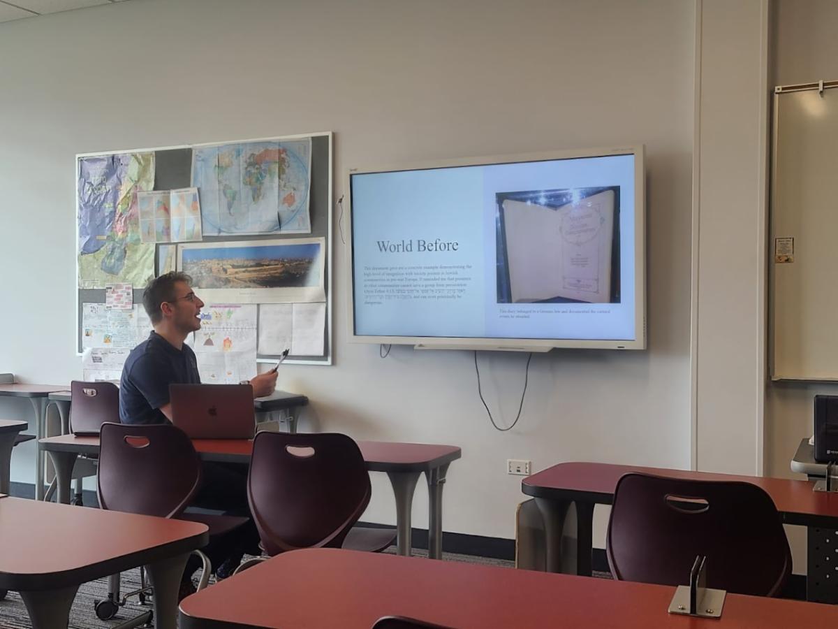 After their recent visit to the Illinois Holocaust Museum and Education Center, seniors in Mrs. Alissa Zeffren's Modern Jewish History Class used photos they took during their visit to create journals about an aspect of the Holocaust, then shared their journals with their classmates.