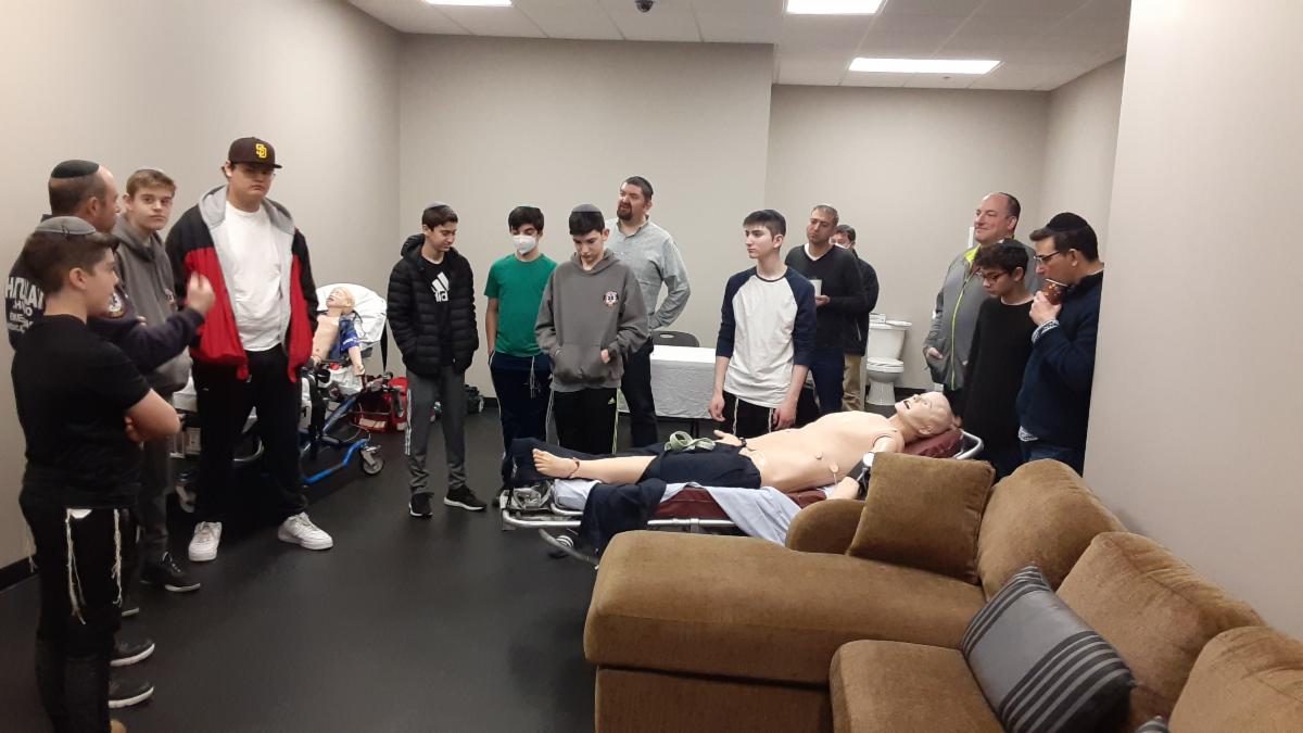 Two fathers of freshman, Mr. David Miller and Mr. Joel Gorenstein, are volunteer medics with Hatzalah, and they gave the group a tour and explained Hatzalah's work following daveningl.