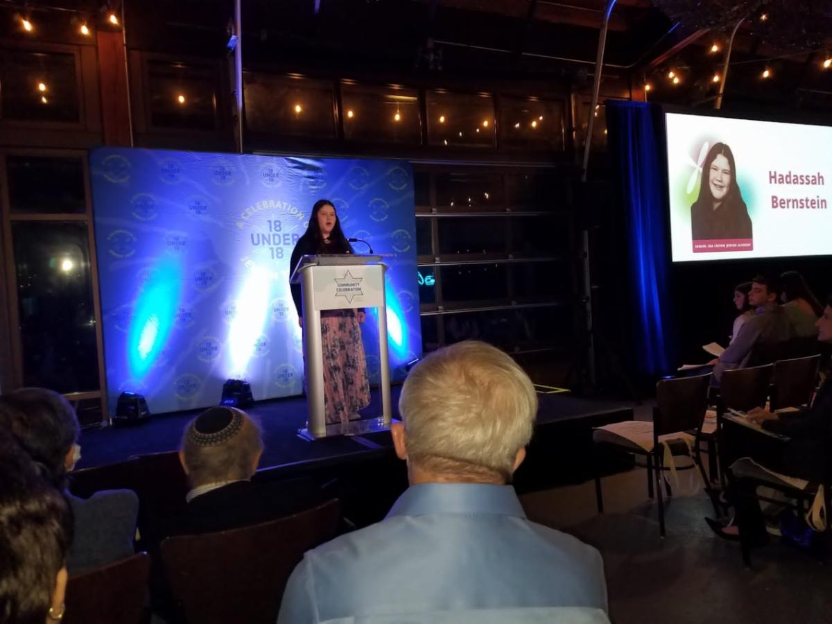 ICJA senior Zachary Miller served as one of the MCs of the awards ceremony and several ICJA students attended. "Ida Crown was very well represented," noted Springboard director Sarina Fogel Gerson. ICJA Tanach teacher Mrs. Olivia Friedman, who attended the event to cheer on ICJA, noted that Hersch's and Hadassah's speeches were notable for including beautiful divrei Torah.