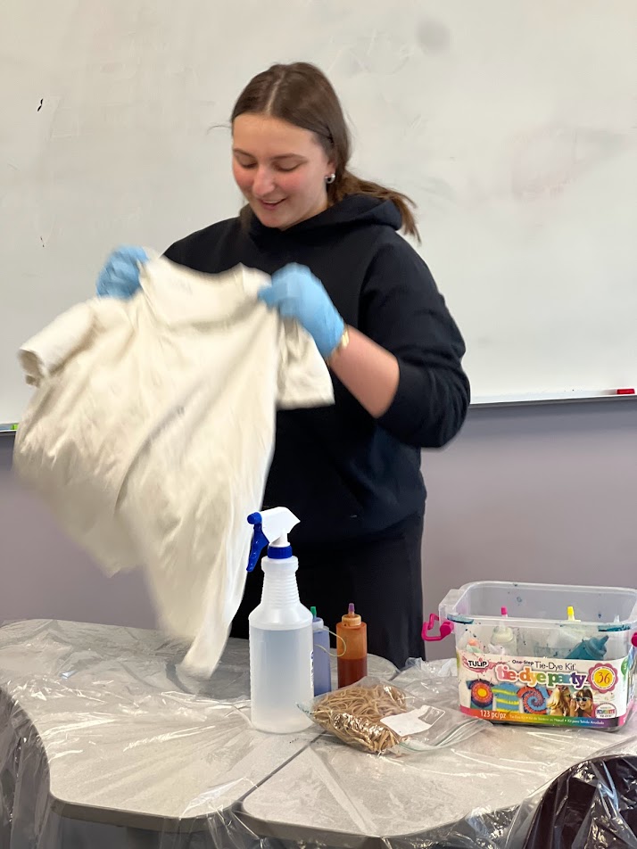 Pictured above: Jordyn Baker demonstrating how to tie-dye clothes | |
