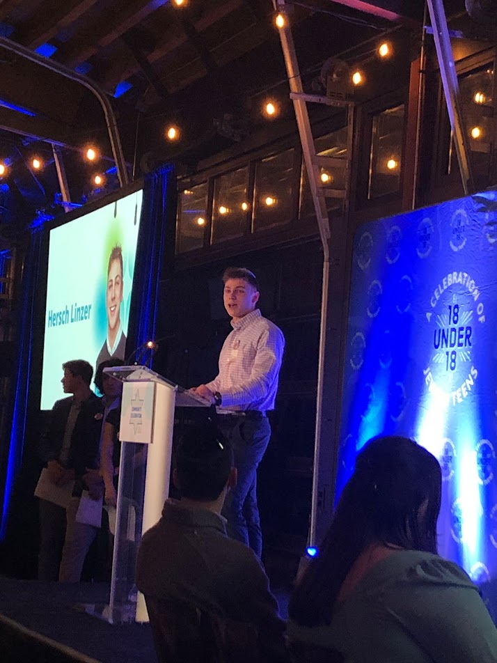 On Monday night, JUF and Springboard, Chicago’s hub for Jewish teen programs, honored seniors Hadassah Bernstein and Hersch Linzer as "18 Under 18" Jewish student leaders. Particularly noted was Hersch's work teaching CPR to the public at community events, and Hadassah's work with Keshet Peer Buddies. History and Tanach teacher Mrs. Alissa Zeffren was honored as a "LEADer" for her work going above and beyond the classroom.