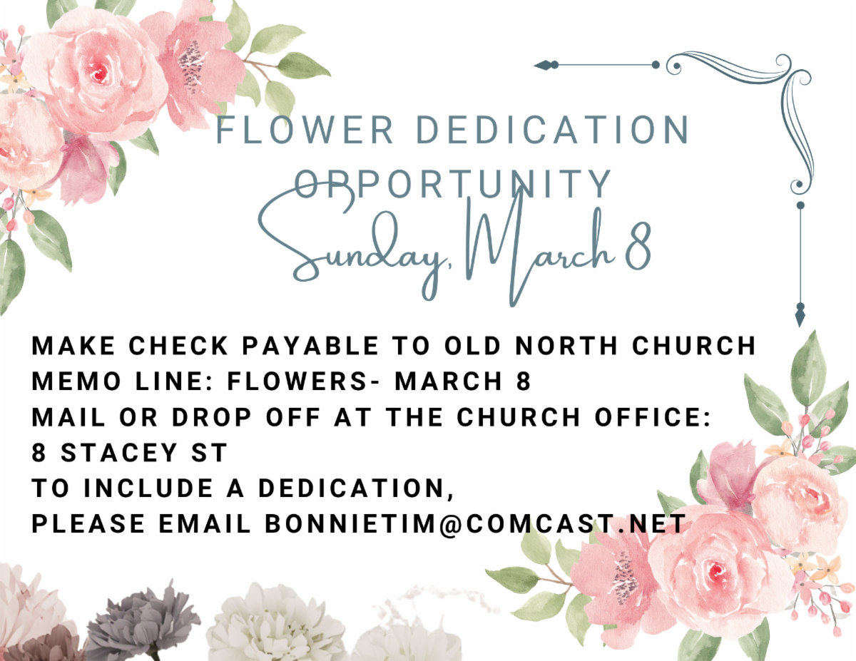 If you know of anyone, either here at Old North or in the wider Marblehead community, who is going through a difficult time, the Community Life Board would like to reach out with a little plant and a friendly note. Please contact Lynda Hare at hares8carrots@hotmail.com or 781-639-0107 if you know someone who would appreciate a little extra cheer. |