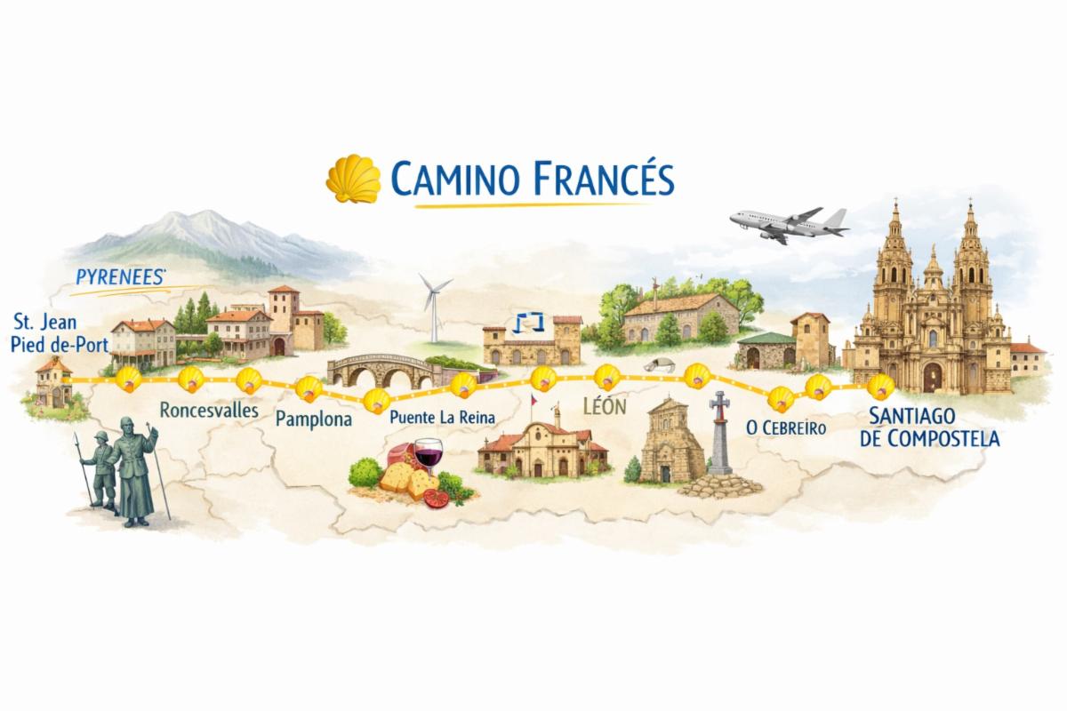| | A photo journal & highlights of a Pilgrim’s 568 miles (914 km) 42 day walk on The Way of St. James. Beginning in Saint-Jean-Pied-de-Port, France and ending in Finisterre, Spain, you’ll view the spectacular everchanging beauty of the terrain, the magnificent churches and historic monuments, a peek into nightly accommodations, and other Pilgrims making this journey. If you’re inspired, have questions and/or want to learn more, please contact Kathi Vander Laan kvanlaan@comcast.net. | | |