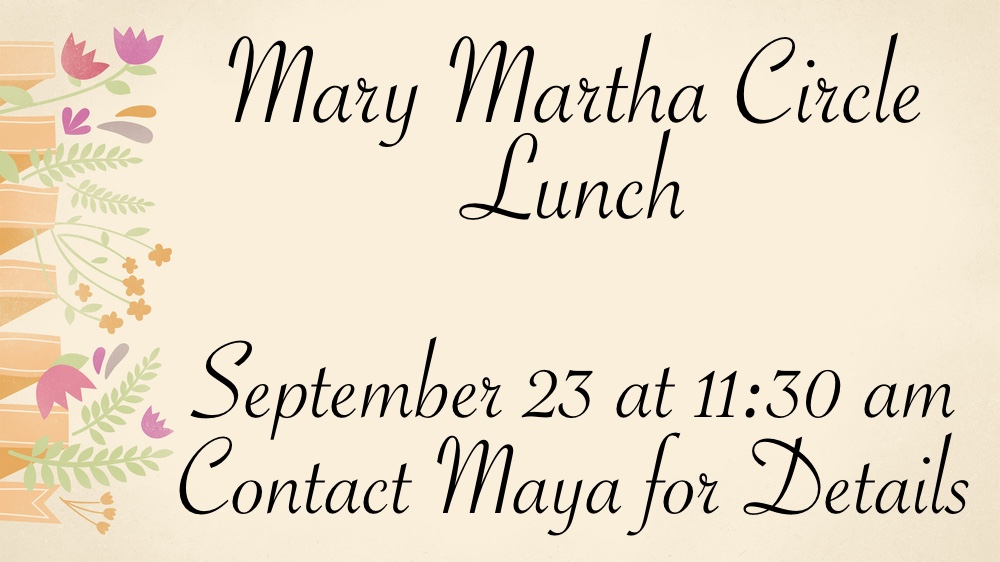 - September 23, Mary Martha Circle Lunch