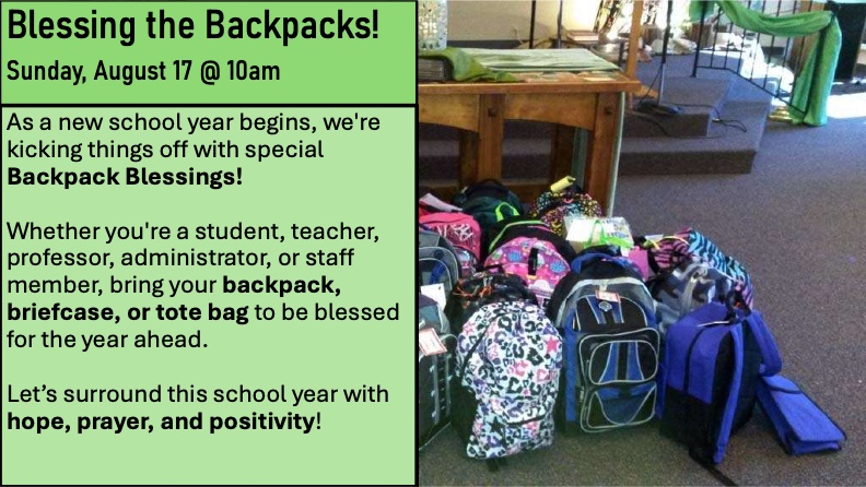 - August 10, Time of Prayer for the Backpack Blessings Program