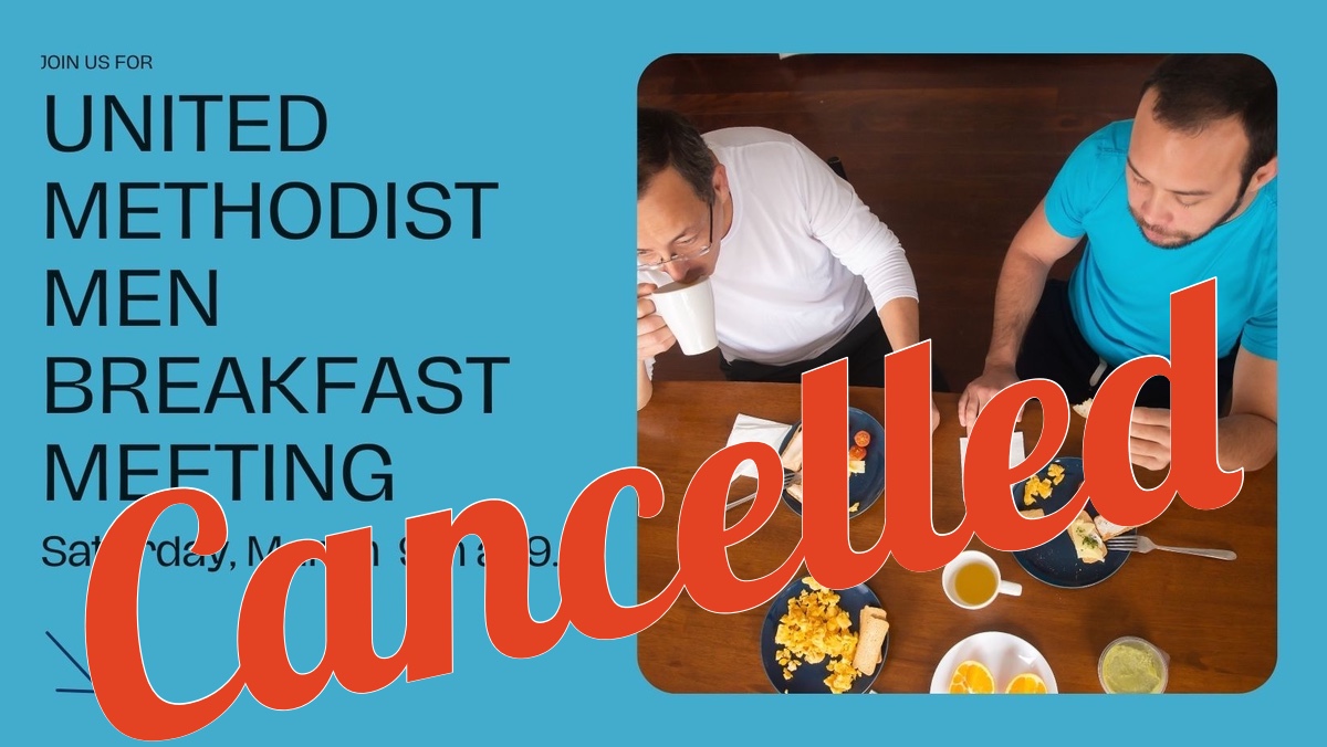 March 9, Cancelled! United Methodist Men Breakfast Meeting
