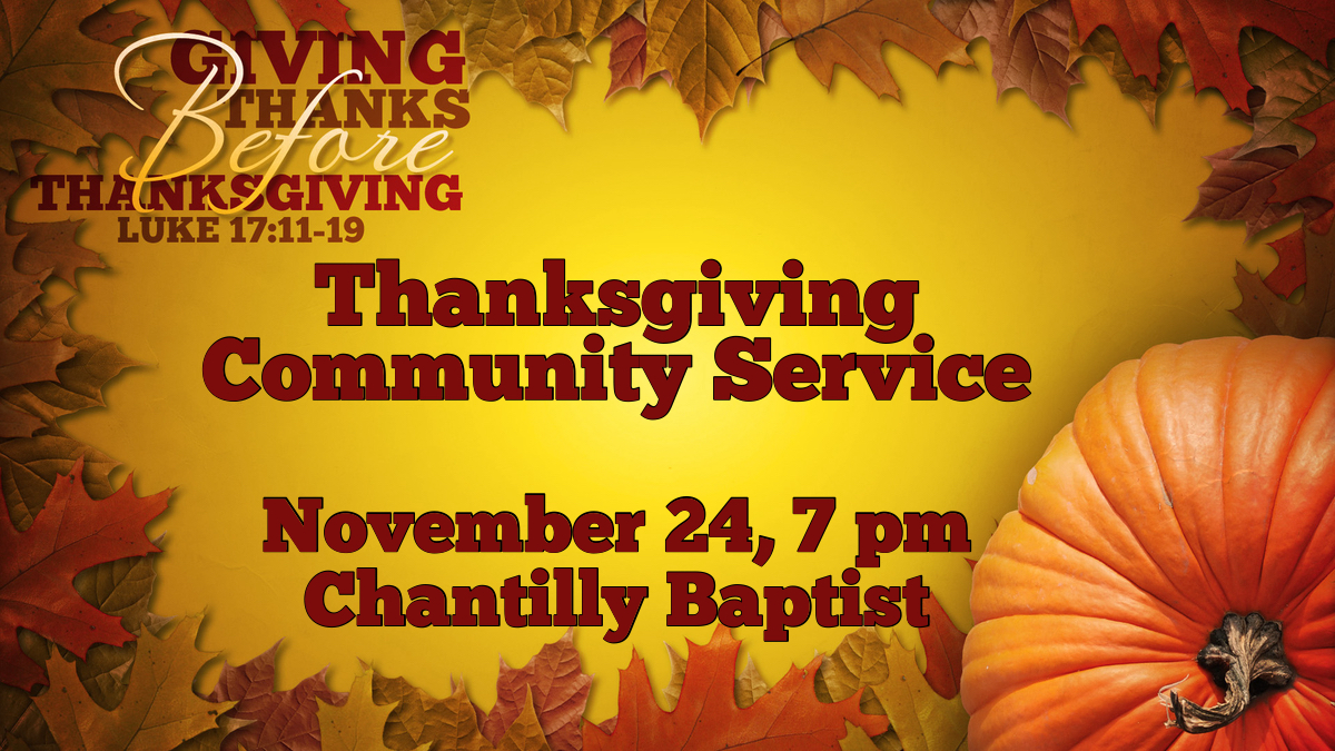 - November 24, Community Thanksgiving Service at Chantilly Baptist Church