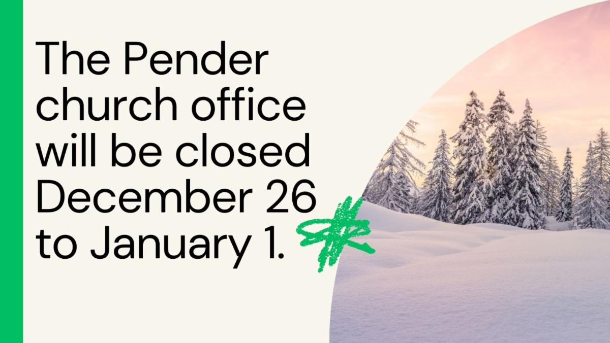 December 26-January 1, The Church Office will be closed.