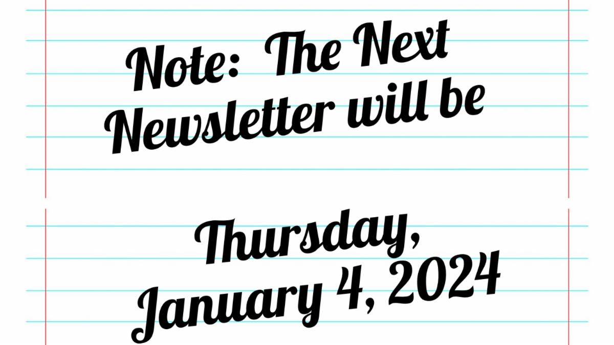 For next week, through January 6, 2024 | |