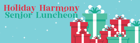 Join us on Wednesday, December 17 in the Auditorium from 11am-1pm for a Holiday Harmony Senior Luncheon. Get out of the cold weather into some warm fellowship, fun, and good food! We'll have holiday games with Christmas Trivia and prizes. Monetary donations to help with the food cost are always welcome. Sign up through the button below.
