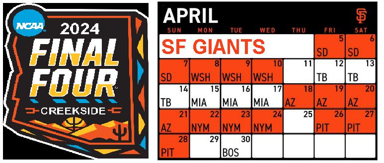 GAME ON: Giants, Final Four, Golf, NASCAR | This Weekend: Catch SF Giants Home Opener and all the Final Four action at Creekside. We're not a sports bar, but we do love the games, tournaments, races, and matches. Watch (and Drink) Responsibly. | | |