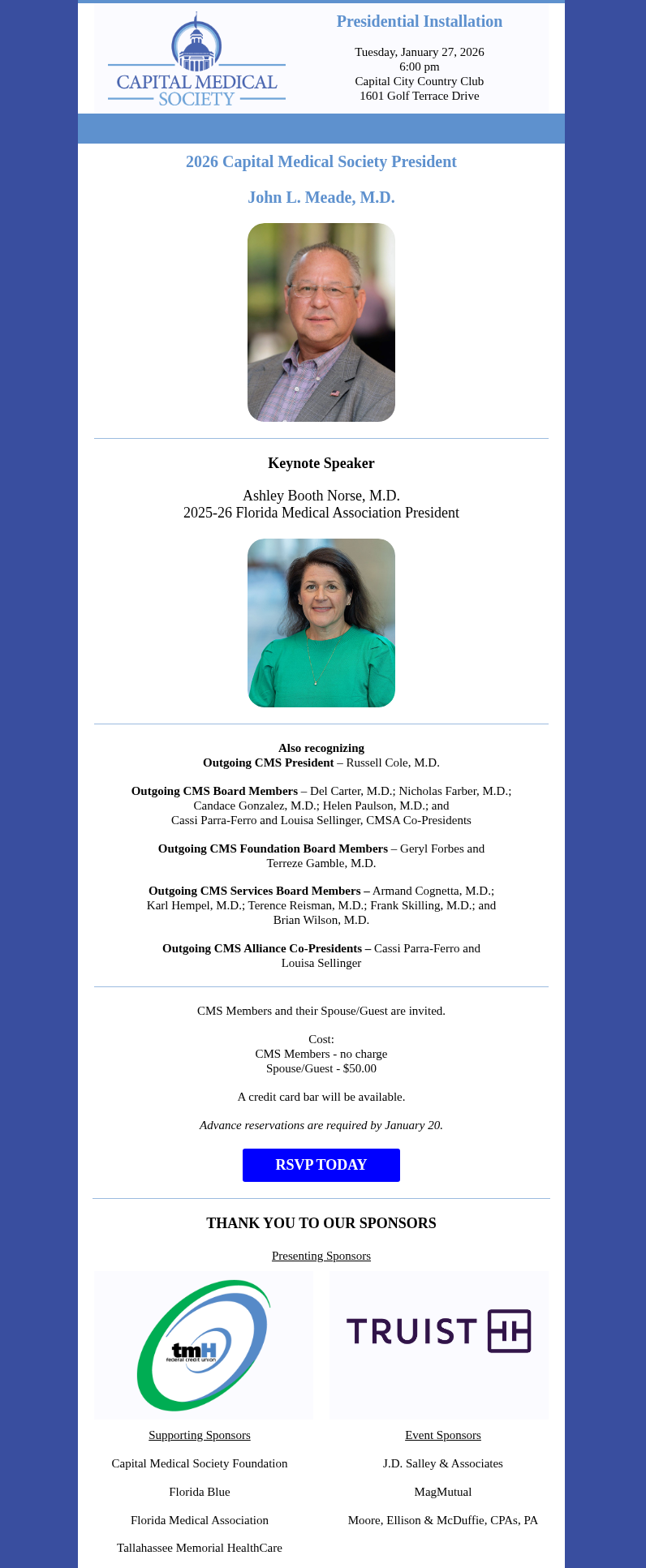 | RSVP for the 2026 CMS Presidential Installation of John L. Meade, M.D. Please RSVP by 1/20/2026 | 2026 Doctor of the Day Program | |