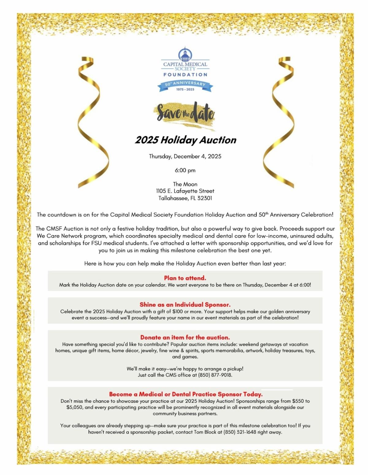 The Capital Medical Society will publish its 2026 Membership Directory early next year. It will be distributed to all members. We have once again partnered with E&M Consulting to produce the directory. The publication will be available in both print and digital formats. E&M will be contacting our members over the next few months about advertising opportunities in the directory. E&M will manage all the advertising sales, creative design, and formatting of the publication for us. This is a very professional group with experience in publishing association directories.