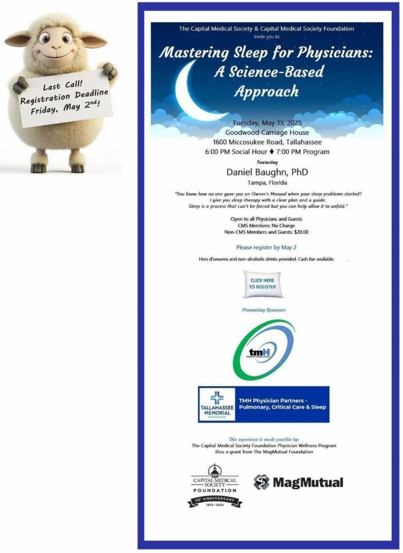For more information on Allegro Tallahassee, click here. | | For more information on Right at Home, click here. | | The section above includes paid advertisements. | | LAST CALL TO RSVP! CMS & CMS Foundation Invite All Physicians and Guests to "Mastering Sleep for Physicians: A Science-Based Approach" - May 13, 2025 | | Florida Medical Malpractice Bill Heads to Governor After One-Day Stall in the Senate | |