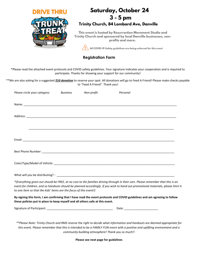 We need your help! We are looking for about 50 businesses (or more) to set up a trunk during our event. Please see the registration form & the guideline below.