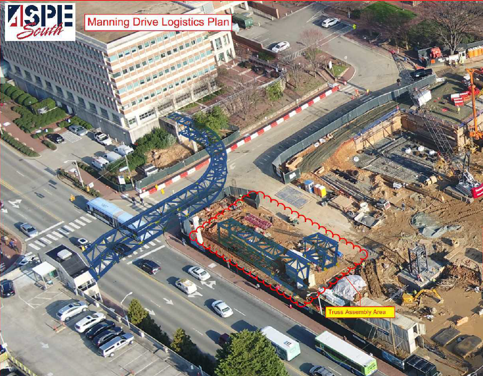 The contractor for the Hospital Surgical Tower is ready to start the installation of the Pedestrian bridge across Manning Drive. Construction will require closing Manning Dr. from Columbia St. to East Dr. These road closures are scheduled from 8pm on Friday until 5am on Monday as detailed below. During this time access to the MacNider loading dock will not be available.