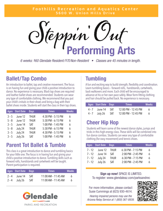 For more information or any questions about the programs, click here please call the Glendale Community Center directly at 623-930-4700.