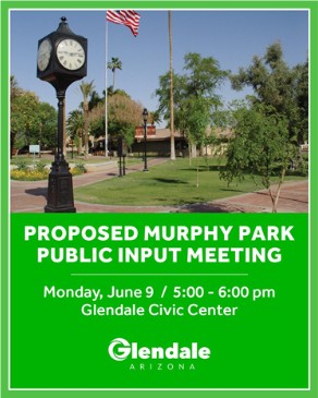As part of the Downtown Campus Reinvestment Project, the Murphy Park schematic design will highlight the park's hardscape, lighting, and landscaping-all aimed at creating a more vibrant, sage, and welcoming environment in downtown Glendale, AZ.
