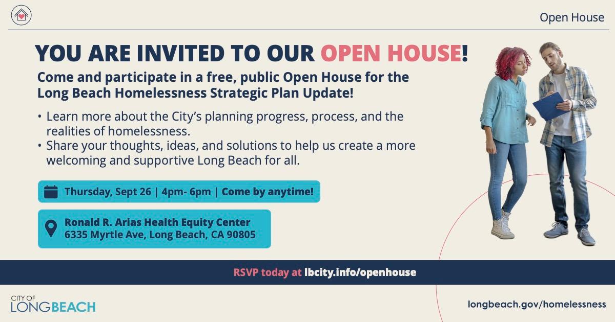 Open House for the Homeless Strategic Plan Update | The newly formed Office of Homeless Strategy and Partnerships is partnering with the Health Department to lead the development of the City’s Homelessness Strategic Plan Update. Join the conversation and have your voice heard. | | | |