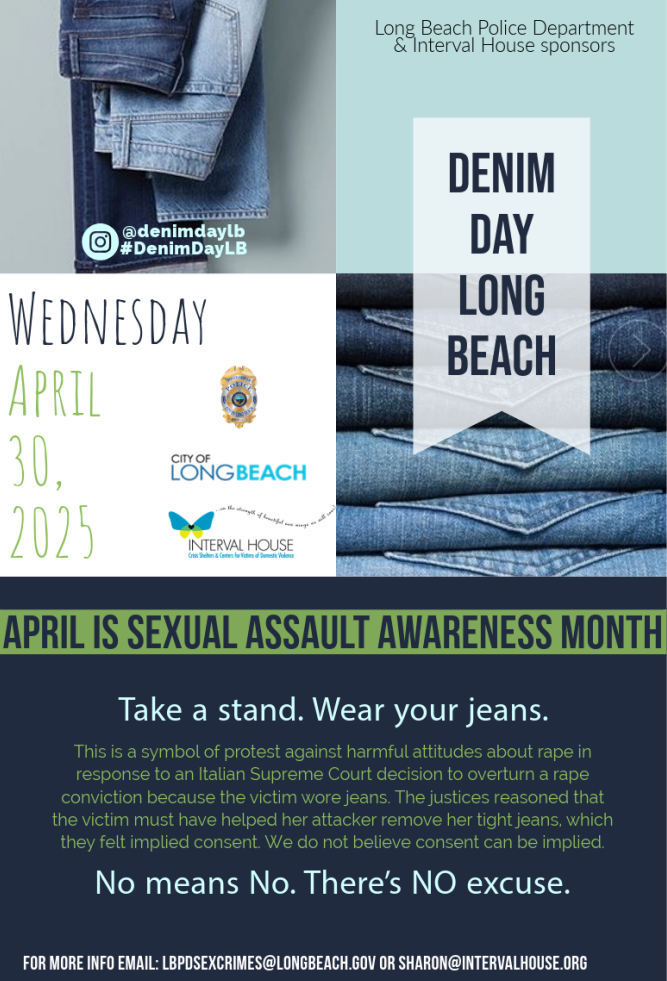 Join the City of Long Beach and District 3 as we show our support for Denim Day. We will be wearing our jeans to raise awareness and stand against sexual violence.