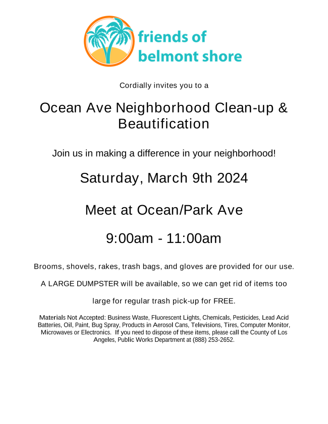 11:00 am - 1:00 pm on Saturday, March 2, at 2800 Studebaker Road, Long Beach