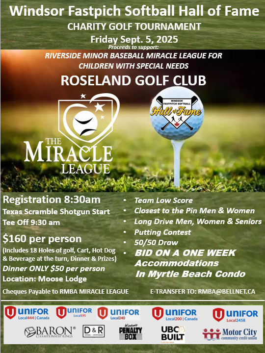 | The Windsor Fastpitch Softball Hall Of Fame will be hosting their 4th annual charity golf tournament on Friday, September 5th, at Roseland Golf Club. Cost to enter is $160 per golfer and includes dinner. The proceeds will support the Riverside Minor Baseball League for Children with Special Needs. Please click the button below to visit the event website for details, entry forms, and information about sponsors. | 2025 Windsor-Essex Vital Signs Survey | |