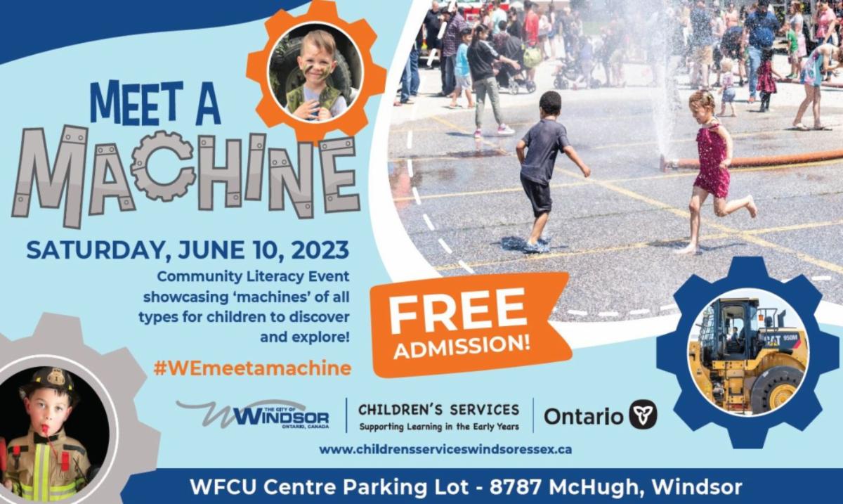 Meet a Machine is a FREE community literacy event hosted by City of Windsor Children’s Services. Machines of all shapes and sizes, including emergency vehicles, construction equipment, military trucks, buses, forestry trucks, race cars, tow trucks and much more, are on display for children to discover and explore.