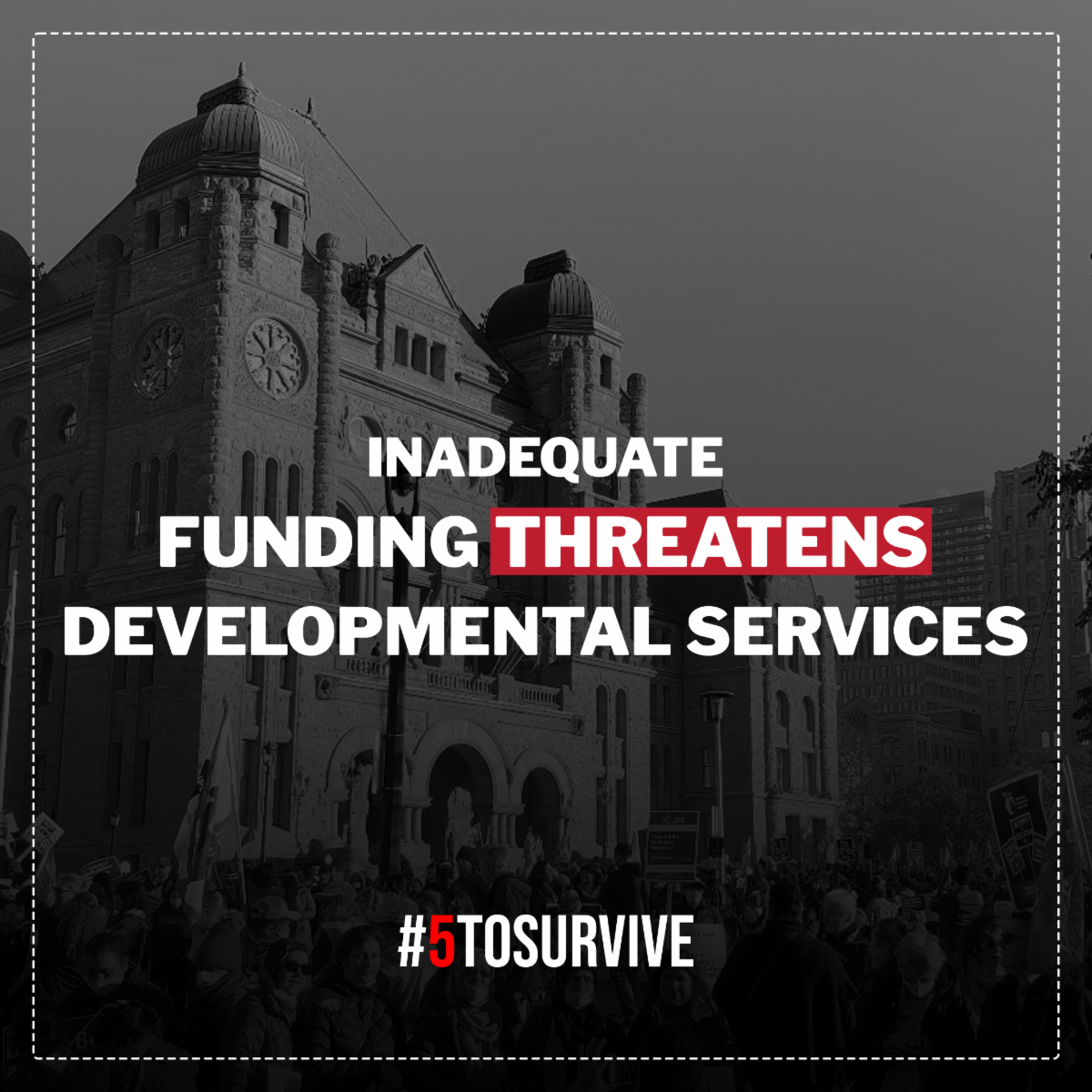 Inadequate funding is threatening Developmental Services and the people who rely on them. Join us in calling on the Government of Ontario to provide an immediate 5% increase to base funding, including Passport and Special Services at Home! #5ToSurvive