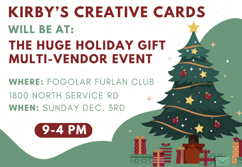 Kirby creates beautiful handmade cards for all occasions. Her next event is a FREE event taking place on Sunday, December 3rd from 9 am - 4 pm at the Fogolar Furlan Club in Windsor. There will be over 80 vendors offering a multitude of holiday gifts. Come out and say hello and pick up some holiday cards!