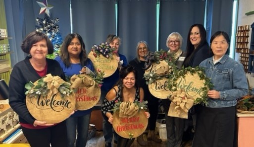 Another successful FREE Ensemble Caregiver event was enjoyed by all! On Saturday, November 25th, unpaid caregivers of adults with intellectual disabilities were treated to another free creative recreational activity. With the expert guidance provided by Lisa, owner of Crafty Nest Studio, families created decorative door hangings.