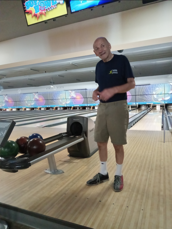 Ken enjoys going bowling with his housemates. It has become a regular, fun activity for them. When he rolls that heavy ball down the lane and knocks down all the pins in one shot, he can't help but smile. His strikes, along with that smile, bring joy to everyone around. Bowling simply makes Ken very happy!