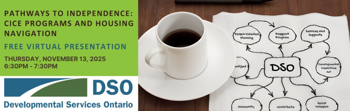 | Re:Action4Inclusion (R4I), supported by Community Living Ontario, is a youth-led movement empowering young people to create more inclusive schools and communities. R4I offers free virtual leadership workshops for youth aged 14–29 on topics like leadership, accessibility, and building inclusive spaces. Community Living Ontario also provides the Truths of Institutionalization: Past and Present curriculum and workshops, which explore the history of institutions and promote advocacy for inclusion. Both programs encourage youth to learn, lead, and take action toward a more inclusive future. | | Upcoming DSO Virtual Event | | Join the DSO Housing Navigators for Pathways to Independence: CICE Programs and Housing Navigation, a free virtual session on Thursday, November 13th, from 6:30 p.m. to 7:30 p.m. Learn how working with a housing navigator and participating in a Community Integration through Cooperative Education (CICE) program can support your goals for independent living. The session will also explore how to determine if a college program is the right fit for you. Click the button below to register for this free event. | |