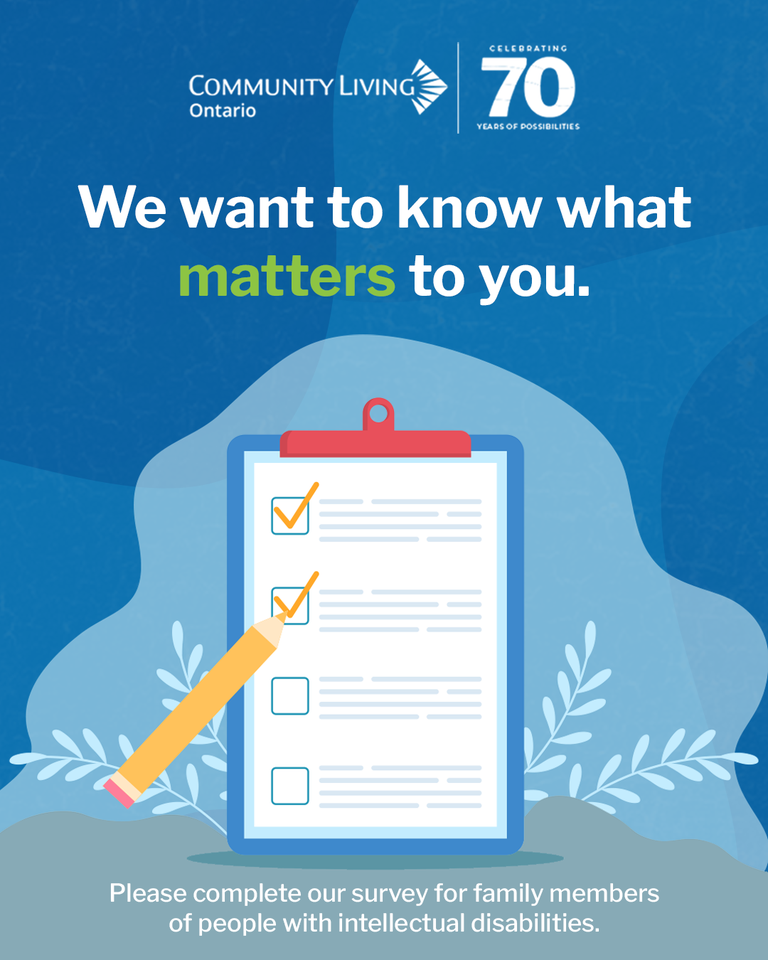 Take a few minutes to fill out the below survey from Community Living Ontario! They're looking for feedback from family members of people with intellectual disabilities.