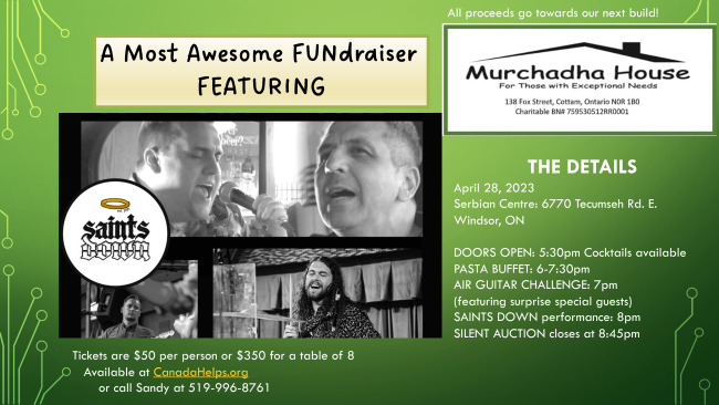Murchadha House is hosting a fundraiser on April 28th at the Serbian Centre, located at 6770 Tecumseh Road E in Windsor. This FUN contest and showcase is designed to involve more people in the Murchadha House community. By participating in this aspect of the FUNdraiser, you will be assisting them in their mission to build fully accessible homes for people with intellectual disabilities. Murchadha House wants to give people with exceptional needs the opportunity to live as independently as possible, with support, within their community.