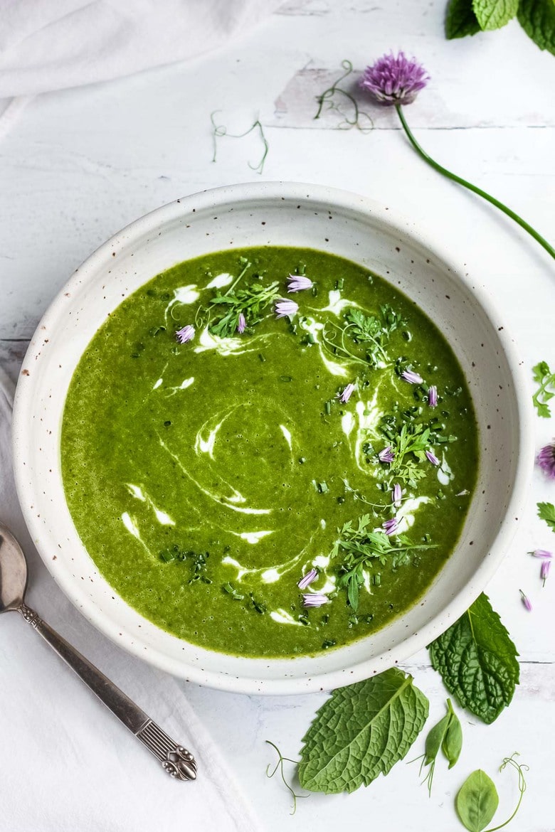 Nutritious spring spinach soup, velvety smooth with a refreshing hint of mint. Simple clean ingredients create a deeply nourishing and delicious soup that is dairy-free, vegan and gluten-free. Serve warm or chilled.