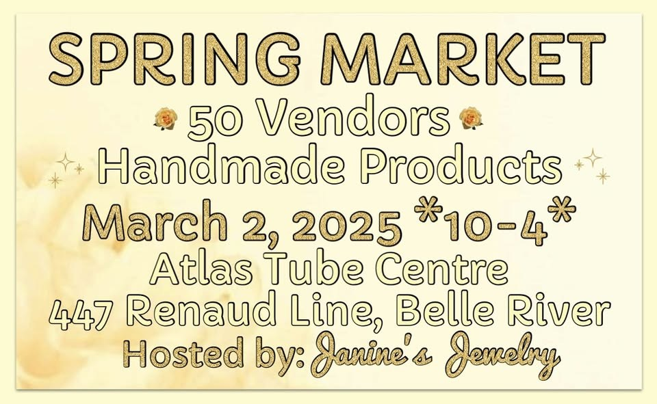 The Spring Market, hosted by Janine’s Jewelry – Craft & Gift Shows, takes place on Sunday, March 2nd, from 10:00 a.m. to 4:00 p.m. at the Atlas Tube Centre. This exciting event features 50 local vendors showcasing handmade products, with Pretzel Central offering cold drinks and their delicious handmade soft pretzels. Admission is free, making it the perfect opportunity to shop unique items and enjoy a fun day out. Don’t miss out on this local market experience! | |