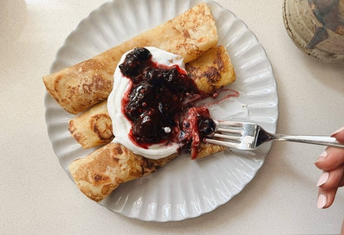 French Toast Crepes are the perfect blend of breakfast and snack! Made with gluten-free almond flour tortillas, this easy recipe features tortillas dunked in eggs and maple syrup, then pan-fried to golden perfection. The result is a delicious, crepe-like treat with a French toast twist. Serve them with blueberry sauce, thawed frozen fruit, or roll them up with jam and yogurt for a quick, grab-and-go option. These versatile crepes are a tasty and fun addition to any meal or snack time! Click the button below for the recipe. | |