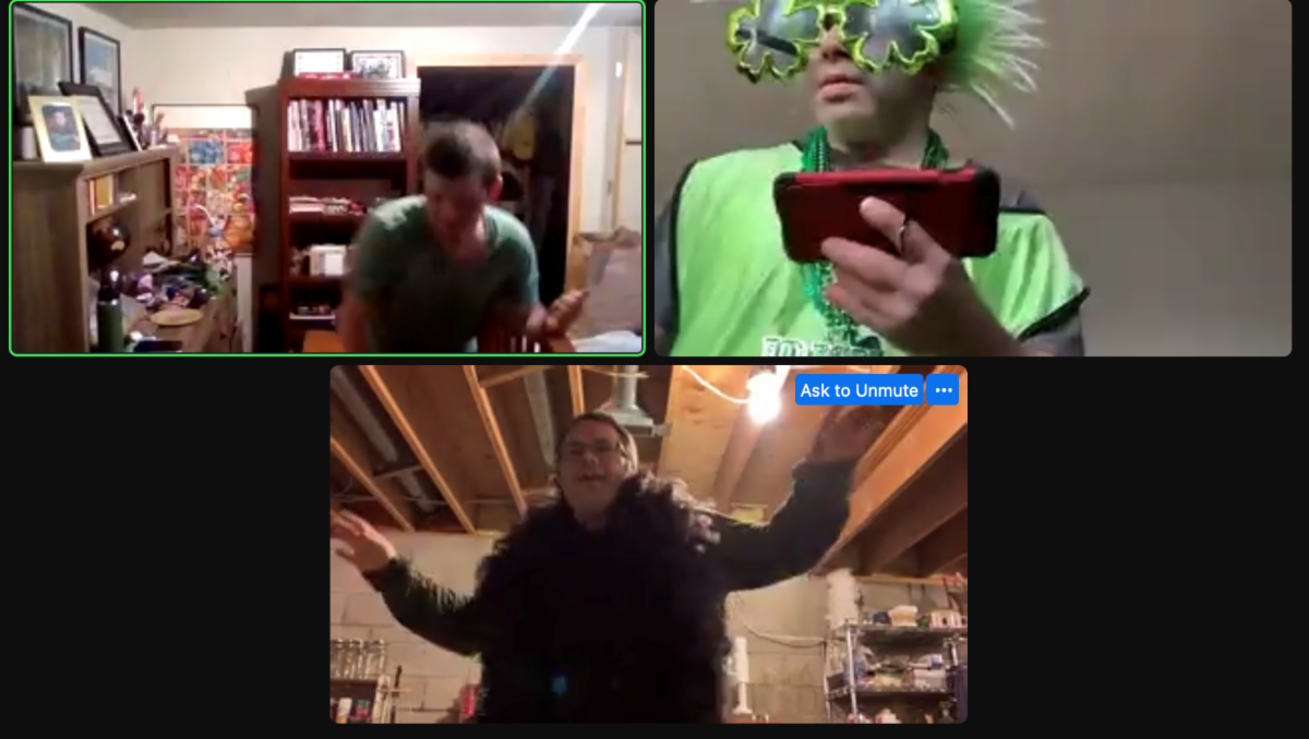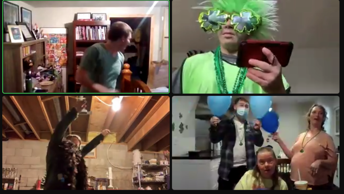 As you can see from the pictures, everyone was happily in the St. Patrick's Day spirit. A special thanks goes out to Tom, Paisley, Cynthia, Gerri, Beth, Cathy, James, Tiff, Krystal, and Liz for their commitment to these virtual activities and for making them as enjoyable and interactive as they always are.