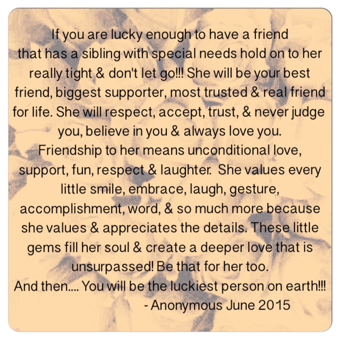 Your sibling with an intellectual disability has given you gifts that impact your life and the lives of others, but most importantly their lives, as your very treasured sister or brother.