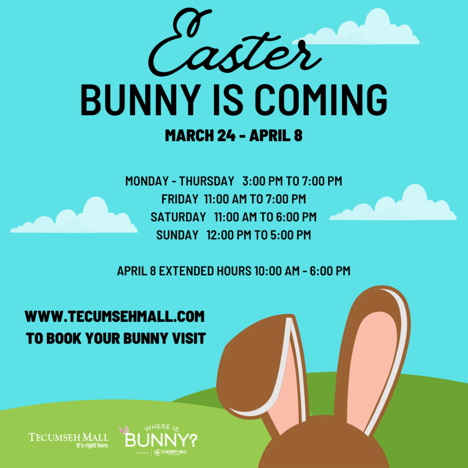 Mark your calendars! Some bunny special is coming to Tecumseh Mall, starting March 24th until April 8th.