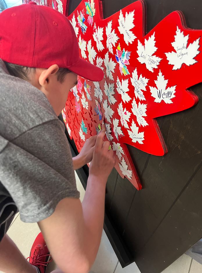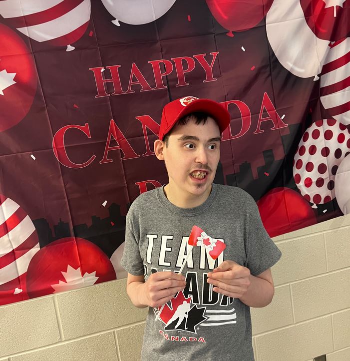 Konnor attended a Canada Day celebration where he watched live music and put his name on a maple leaf mural for all to see. He was very happy to wear his Team Canada clothing while celebrating the holiday.