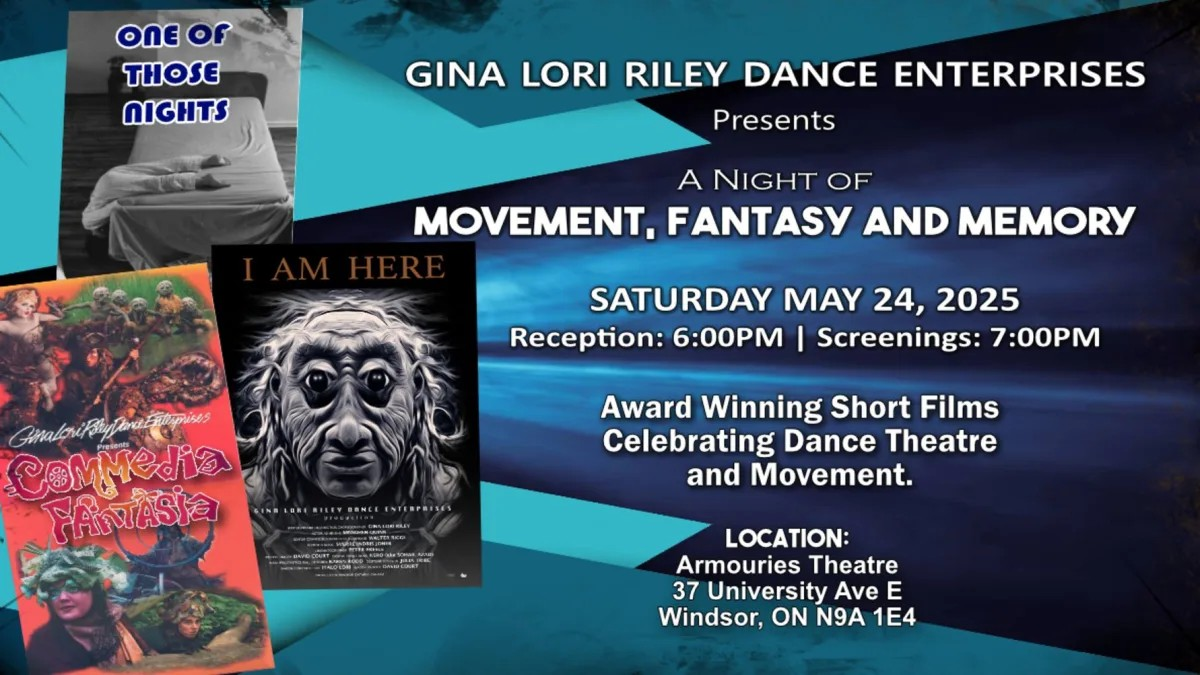 | On Saturday, May 24th, from 5:45 p.m. to 10:00 p.m., Gina Lori Riley Dance Enterprises presents "Movement, Fantasy and Memory" at the Armouries Theatre, 37 University Ave E in Windsor. This special evening celebrates Gina Lori Riley’s career in dance and movement with the screening of three award-winning experimental films—One of Those Nights, Commedia Fantasia, and I Am Here—alongside a display of original costumes, masks, and headdresses. The event also features a cocktail reception, hors d’oeuvres, and a live Q&A session. Doors open at 5:45 p.m. and will be locked at 6:15 p.m., so guests are encouraged to arrive early. Click the button below to purchase tickets. | | Downtown Windsor Farmers' Market