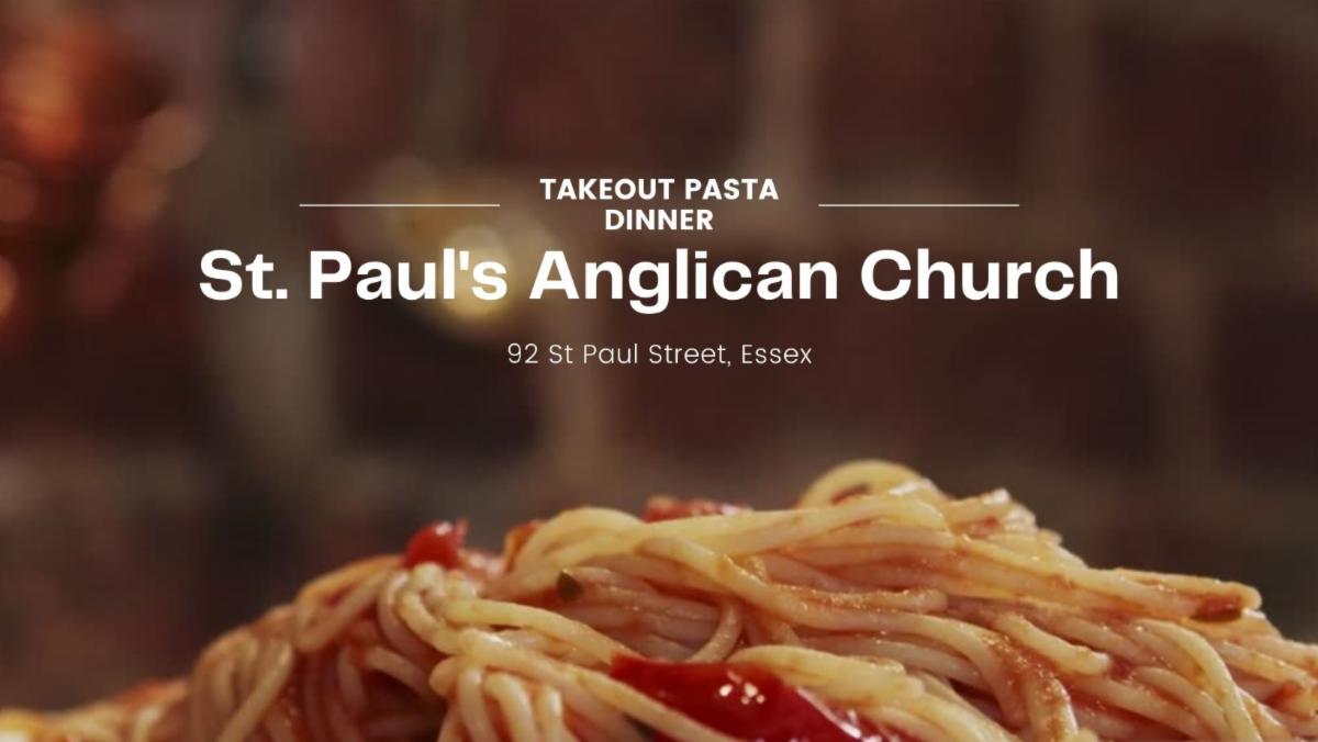 It's that time again! Stop by St. Paul's Anglican Church at 92 St. Paul Street in Essex on Friday December 3rd from 5:00 pm - 6:30 pm and pick up some delicious pasta for dinner. Dinner includes pasta, salad, roll, and dessert for $10.00 meat or vegetarian options are available.