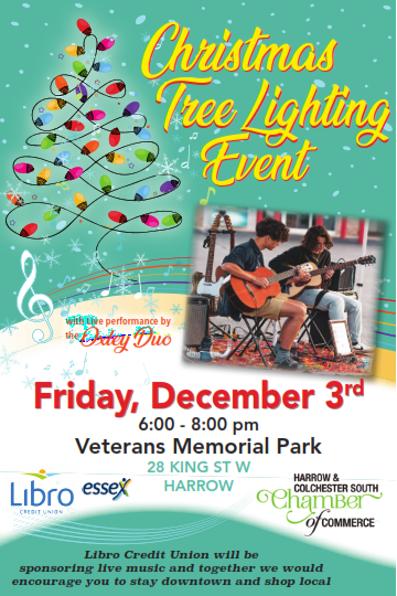 Join in on the Christmas Tree Lighting Event Friday December 3rd from 6:00 pm - 8:00 pm at Veterans Memorial Park! Libro Credit Union will be sponsoring live music from the Oxley Duo!