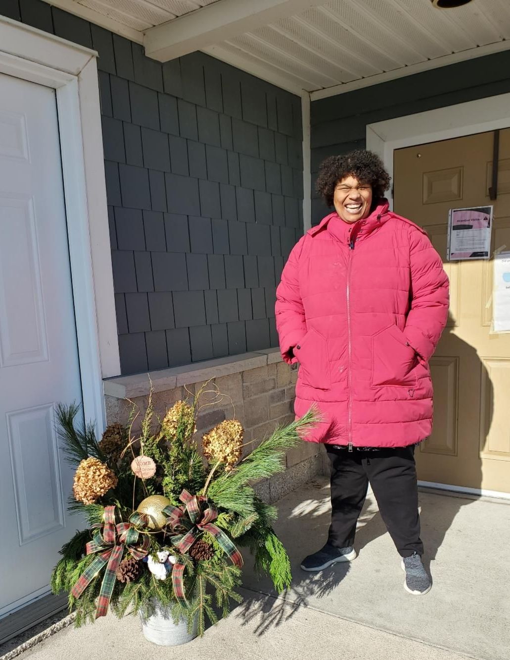 Cassie Ron and Andrew have been having a great time preparing for the holiday season! Last week, Cassie and her support staff put their crafting skills to work and made a beautiful decorative holiday planter for Cassie's front porch. Ron had some fun with the Christmas lights while putting up the Christmas tree at his house! Andrew painted and baked some beautiful homemade Christmas ornaments. Christmas is less than a month away, so if you haven't started decorating, this weekend is the perfect time.