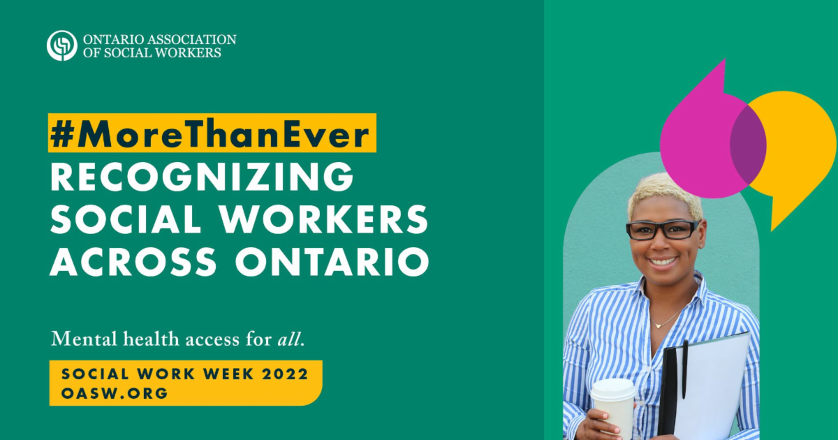 The 2022 Social Work Week theme of #MoreThanEver speaks to this unprecedented need for mental health and addictions support across the province, and the vital role of social workers in ensuring mental health access for all Ontarians.